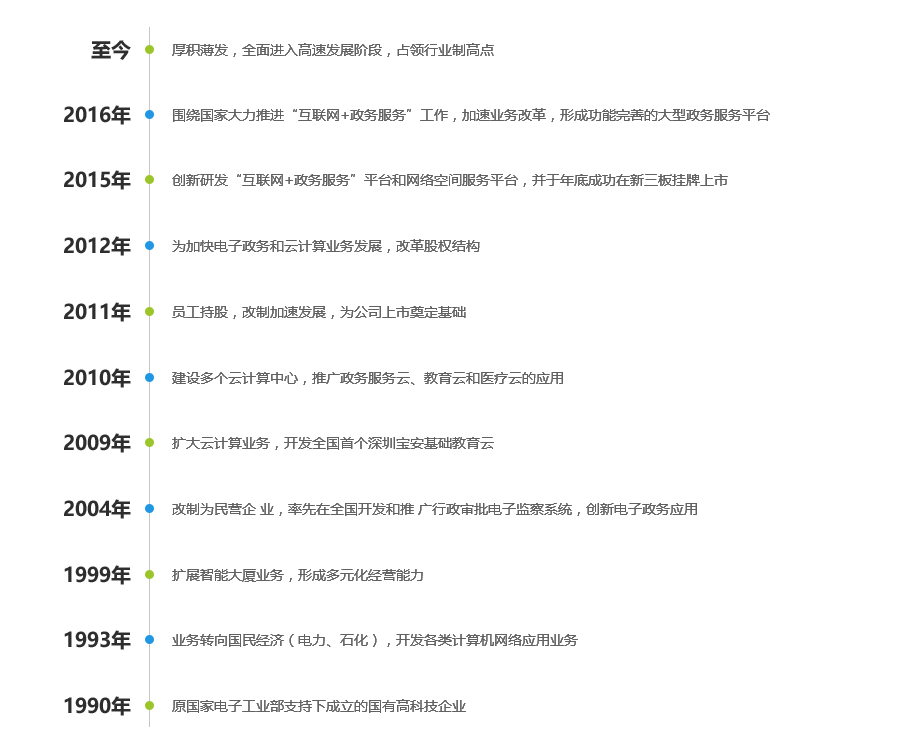 2015年太極數(shù)智承建的佛山市、深圳市寶安區(qū)“互聯(lián)網(wǎng)+政務(wù)服務(wù)”平臺獲得多個口碑獎項,并在國務(wù)院辦公廳《關(guān)于轉(zhuǎn)發(fā)國家發(fā)展改革委等部門推進(jìn)“互聯(lián)網(wǎng)+政務(wù)服務(wù)”開展信息惠民試點實施方案的通知》(國辦發(fā)〔2016〕23號)文件中均有提及。其中佛山市自然人/法人智慧政務(wù)服務(wù)平臺成為全國一門式一網(wǎng)式服務(wù)改革的典型案例,在全國各省市推廣;而深圳寶安“互聯(lián)網(wǎng)+政務(wù)服務(wù)”平臺率先實現(xiàn)全部服務(wù)事項的“100%網(wǎng)上申報、100%網(wǎng)上審批”,實現(xiàn)個人辦事不出街道、企業(yè)辦事不出區(qū)。 經(jīng)過20多年的歷練,太極數(shù)智已打造了覆蓋全國20多個?。?00多個政府客戶)的智慧政務(wù)服務(wù)成功案例。在互聯(lián)網(wǎng)+政務(wù)服務(wù)、大數(shù)據(jù)共享交換、移動政務(wù)服務(wù)、綜合紀(jì)檢監(jiān)察、智慧政務(wù)終端、政務(wù)專業(yè)應(yīng)用、互聯(lián)網(wǎng)+基礎(chǔ)教育等領(lǐng)域具有全系列核心成熟產(chǎn)品。太極數(shù)智已成為典型互聯(lián)網(wǎng)應(yīng)用型國家高新技術(shù)企業(yè),是我國云應(yīng)用先導(dǎo)企業(yè)和互聯(lián)網(wǎng)+政務(wù)服務(wù)領(lǐng)軍企業(yè),并于2015年11月成功在新三版掛牌上市(股票代碼:834127)。