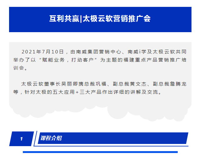 此次工作坊的培訓(xùn),加深了集團(tuán)區(qū)域銷售機(jī)構(gòu)對(duì)太極云軟產(chǎn)品的認(rèn)知和了解,加強(qiáng)了集團(tuán)銷售與太極云軟的協(xié)作,有利于實(shí)現(xiàn)雙方互利共贏?;诩瘓F(tuán)的賦能,結(jié)合太極云軟自身優(yōu)秀的產(chǎn)品能力,太極云軟離上市目標(biāo)又更近一步。